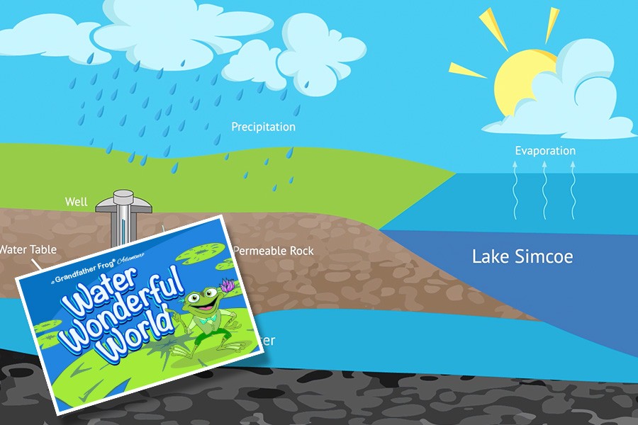 Grandfather Frog hops into the town of Innisfil, Ontario, and finds his pal Jerry Muskrat. Jerry's being very wasteful with water, thinking that he's right next to Lake Simcoe, the 4th largest lake in Ontario. Grandfather Frog shows Jerry how water is not an unlimited resource, and we can strain the system by using more than we need. Even people who draw their water from wells can strain the system. Jerry learns how the town of Innisfil carefully manages and treats water from Lake Simcoe, and that we must all remember to "Protect The Source" - even muskrats!
